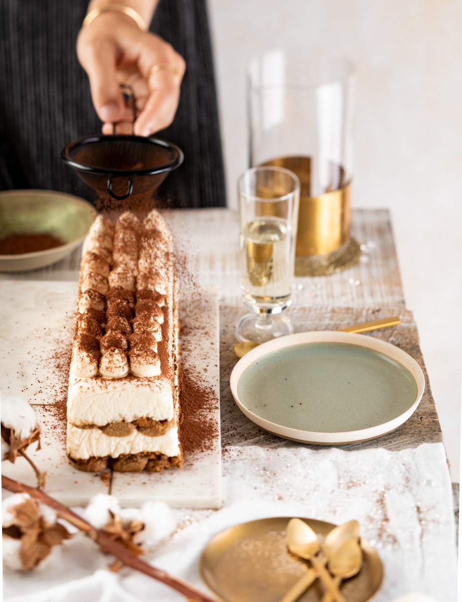 Le montage : Garnissez un moule à cake avec du film alimentaire. Versez une 1ère couche de crème au mascarpone dans le moule, et ensuite rajoutez 15 spéculoos concassés. Imbibez généreusement de sirop la moitié des biscuits à la cuillère et déposez-les sur la crème. Recouvrez de crème mélangée au reste de spéculoos concassés. Terminez en recouvrant du reste des biscuits à la cuillère imbibés de sirop. Réservez au frais 1 nuit.